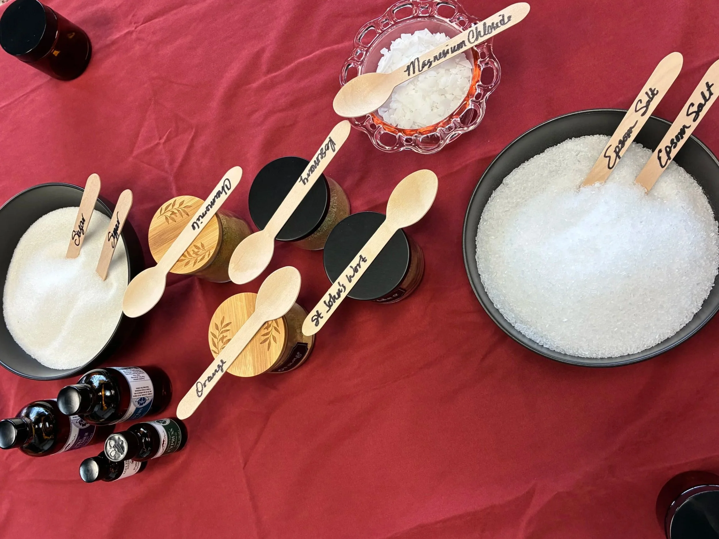 We’ll gather around bowls of mineral salts, sugar, botanicals, and essential oils, learning how to craft a bath soak or body scrub that supports both body and nervous system.